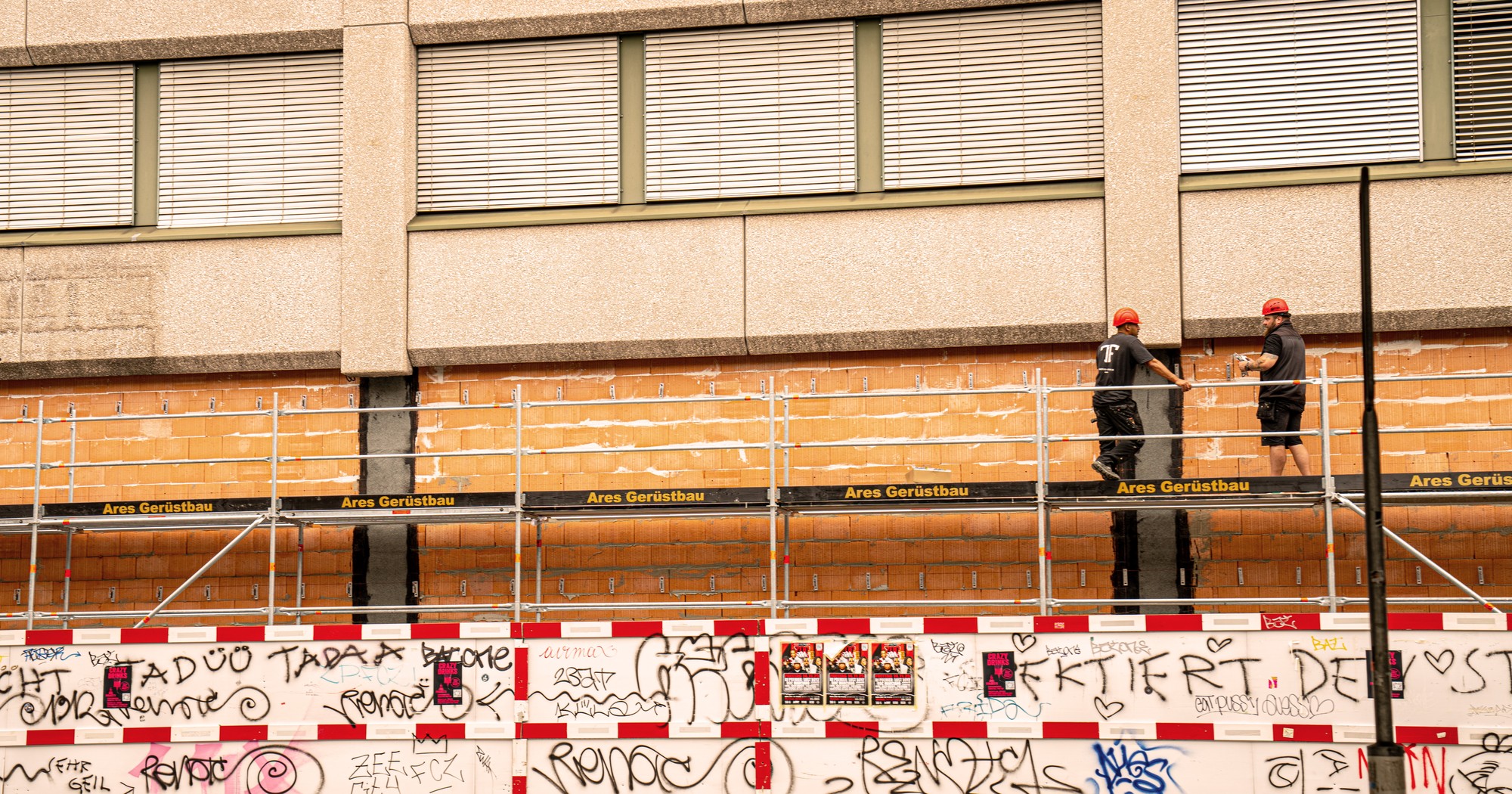 Anderthalb Jahre später befindet sich an der Stelle auf der zentralen Achse zwischen Escher-Wyss-Platz und Bahnhof Hardbrücke – eine zugemauerte Fassade.